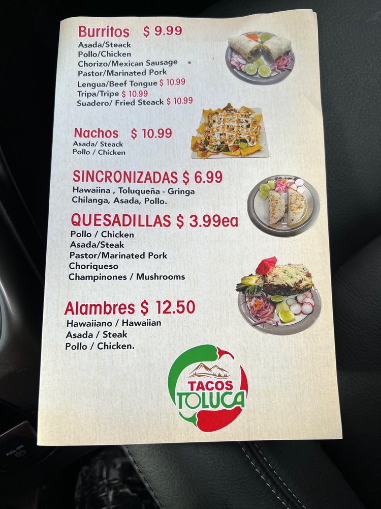 Enjoy your meal in a relaxed atmosphere, complete with outdoor seating and friendly waiter service. Whether you choose delivery or dine in, Tacos Toluca promises an unforgettable dining experience enriched by vibrant flavors and swift service.